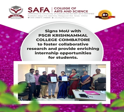MoU with PSGR KRISHNAMMAL COLLEGE COIMBATORE to foster collaborative research and provide enriching internship opportunities for students